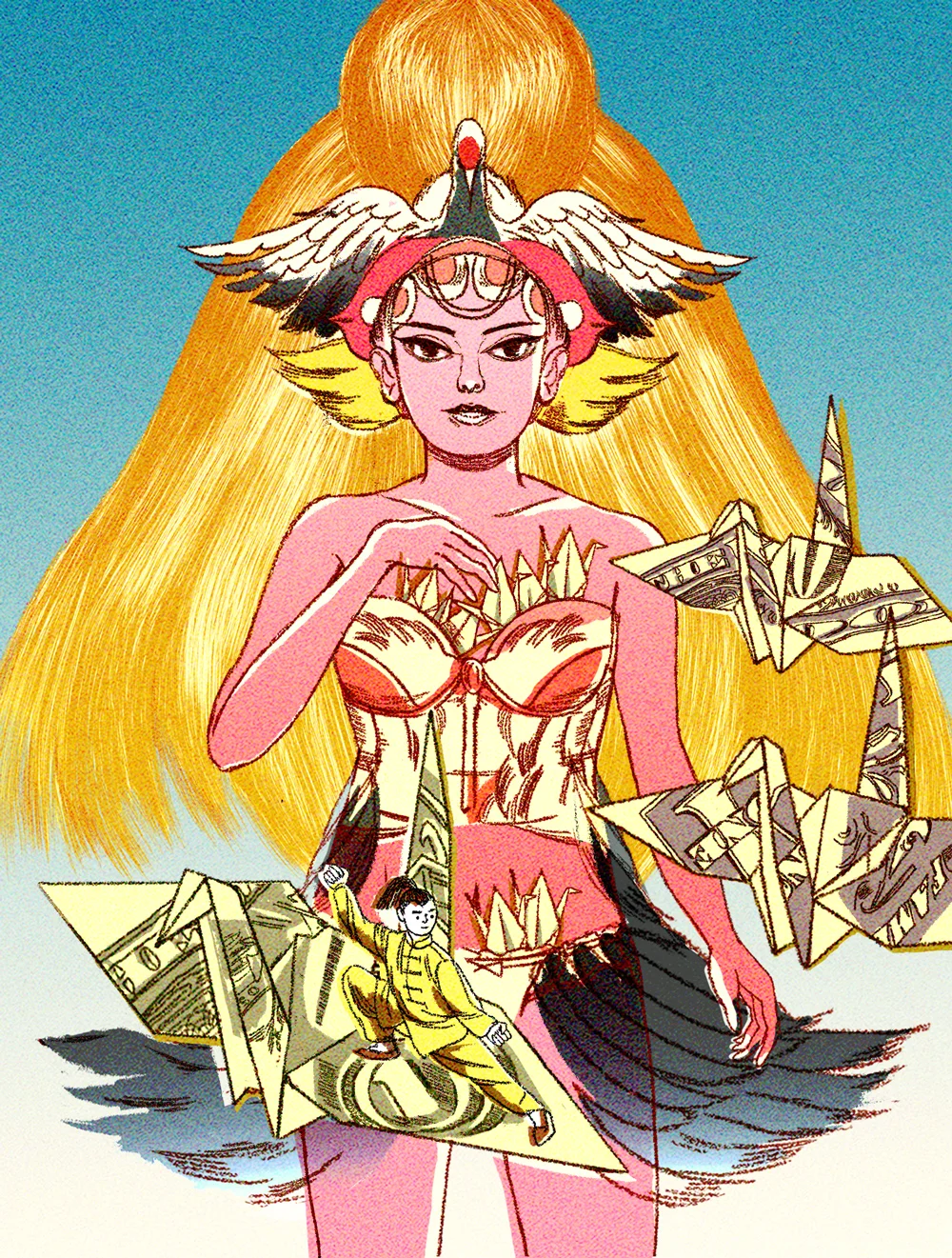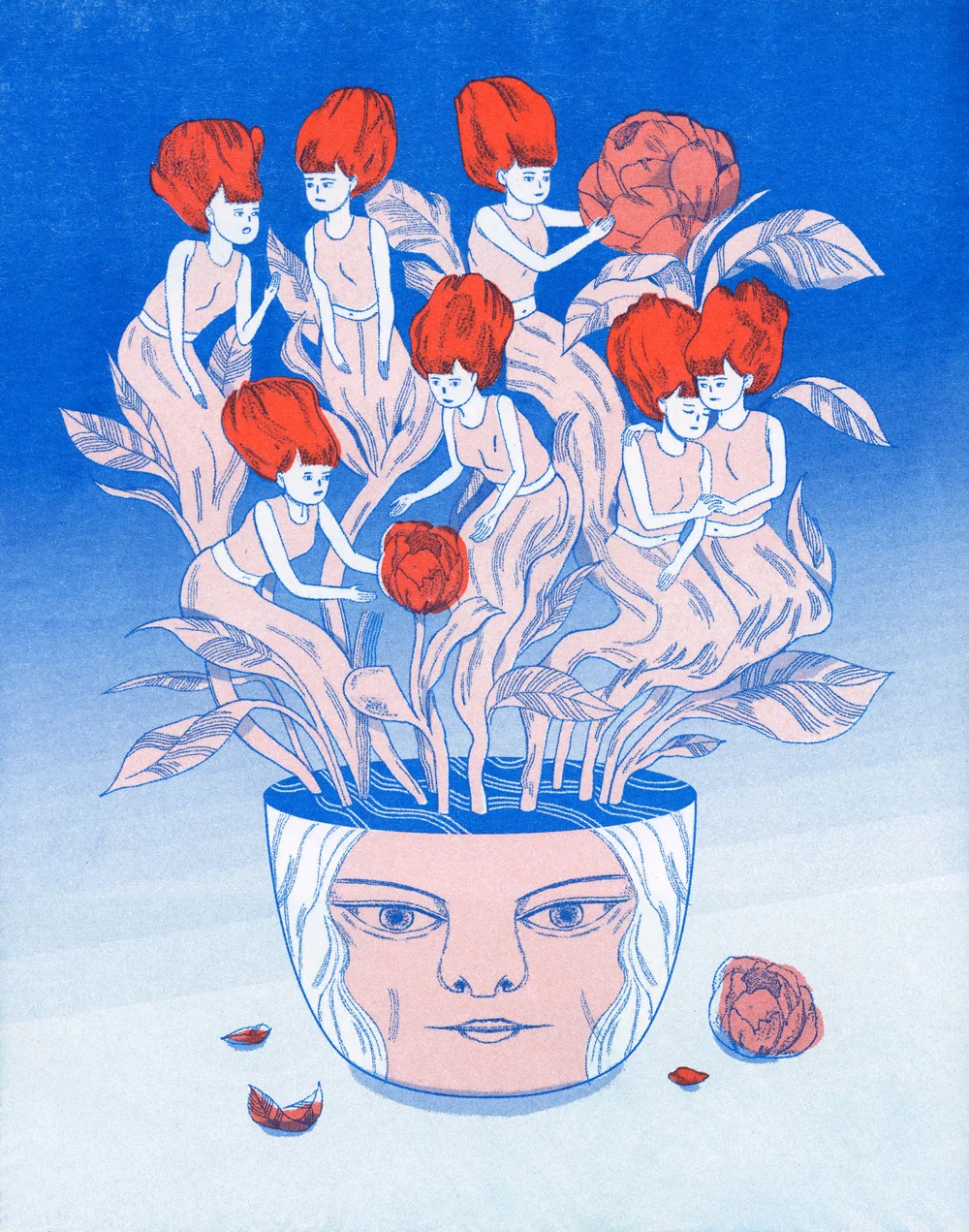 Could you walk us through the process of how you create one of your illustrations? Ideation, sketch phase and final illustration? I saw in one of your Instagram posts that you painted over a digital print, I thought it was really interesting! Is it common in your practice to combine mediums when creating illustrations? What is your favorite medium to work with?